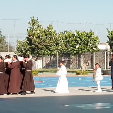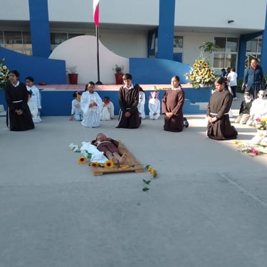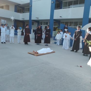 Los niños de Preescolar y Primaria representaron con gran devoción a la Madre Clara y al Niño Jesús Fundador. A través de esta representación, los niños pudieron experimentar y comprender la importancia de la fe y la devoción en la vida de la Madre Clara y en la nuestra propia.
