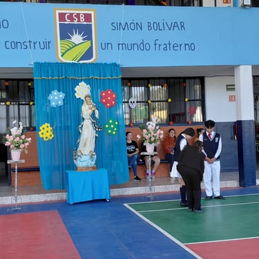 Hoy realizamos el rezo de nuestro Rosario Misionero en el #CSBPedregal #csbpedregal donde nuestros alumnos vivieron oración, fe y esperanza franciscana #rosariomisionero❤️💙💚💛🤍 #RosarioMisionero #FormarparaConstruirunMundoFraterno