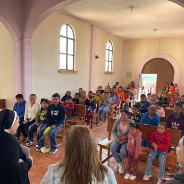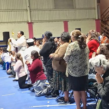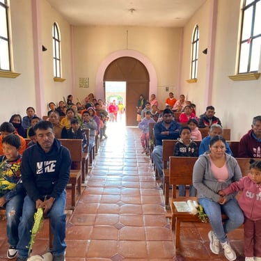 Primer día, compartiendo nuestra fe con los fieles de la capilla Santa Cruz, comunidad Loma del Padre, Cuajimalpa.